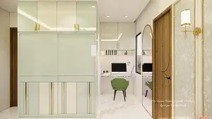This setup not only highlights smart design but also brings sophistication to the bedroom. By combining a study unit with wardrobe, the room achieves a perfect balance of productivity, organization, and style.