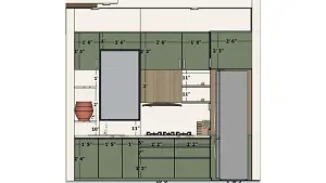 Oven unit dimensions should allow safe usage and proper ventilation. Sink unit dimensions must provide enough space for washing while accommodating storage below. Open kitchen dimensionsshould ensure clear movement between cooking, storage, and cleaning zones. By preparing a 2D shelf layout before execution, homeowners and designers can visualize how each unit will function in everyday use. The base units in this 9'×8' kitchen are designed for maximum convenience: 3 ft Sink Unit:Spacious enough for dishwashing, with storage underneath for a dustbin or water purifier ensuring no corner is wasted. 1 ft Bottle Pull-Out:A slim yet essential unit for oils, sauces, spices and other condiments. Keeping them organized and easy to grab making cooking faster and neater. 2 ft Drawer Unit:Divided into three tiers- 2.5 ft Fridge Slot:To the far right, a 2.5 ft fridge space is reserved, ensuring easy access without interrupting workflow. This step-by-step storage planning helps avoid clutter on countertops and creates a smooth cooking experience. This sequence is not random—it is designed to make everyday cooking smoother. The gas oven unit is positioned strategically to keep preparation, cooking, and cleaning aligned. Referring to the oven 2D size ensures it integrates perfectly within the base unit without wasting valuable inches. Proper placement also improves safety, allowing enough clearance from adjacent storage and wall units. This is where 2D shelfplanning truly shines—before finalizing installation, homeowners can see how the oven interacts with surrounding drawers, ensuring comfort and efficiency. Above the base units, wall-mounted cabinets and shelves maximize storage without overwhelming the design. This vertical layering of 2D shelf and cabinet design makes the kitchen look organized, clean, and modern. Apply the Work Triangle Principle – Maintain optimal distances between the sink, fridge, and oven unit to ensure smooth workflow and efficiency. Prioritize Thoughtful Design – Plan modular kitchen dimensions carefully so that every element, from base units to 2D shelves, fits seamlessly without overcrowding. Select the Right Color Palette – Light tones such as olive green, ivory, or beige help enhance space perception and create a modern, airy atmosphere. Utilize Bottle Pull-Outs – Slim pull-outs are ideal for organizing oils, spices, and sauces while maximizing narrow spaces. Integrate Mixed Storage Solutions – Combine wall cabinets, open shelves, and lofts to achieve a balance of accessibility and long-term storage. A modular kitchen isn’t just about looks—it’s about thoughtful planning. By focusing on kitchen interior dimensions, oven unit dimensions, and the right use of 2D shelves, you can transform even a 9'×8' kitchen into a practical and stylish cooking space. The olive green kitchen we explored proves that with smart placement of the sink, oven, fridge, and lofts, every corner can serve a purpose. In the end, the right planning ensures your kitchen feels bigger, works better, and makes cooking an experience you actually enjoy.Why Dimensions Matter
