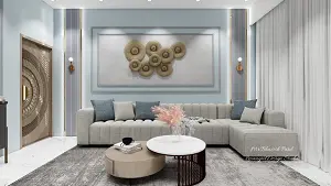 A well-planned sofa back wall design latest trend focuses on making the living room look elegant while keeping the design practical and cost-effective. The wall behind the sofa naturally becomes the focal point of the space, so designing it thoughtfully can transform the overall appearance of the room. One of the most effective approaches is combining molding panels with subtle groove cutting to create a structured yet clean look. This type of interior sofa back wall design works well in modern homes because it highlights the seating area without making the wall look too heavy or cluttered. This featured image is a part Modern 2BHK Apartment in Golden Residency, Bharuch – Affordable & Stylish