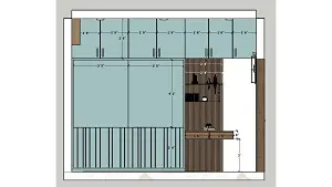 Bed front view sliding wardrobe, work station and large mirror