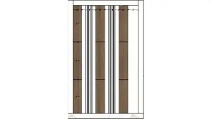 View from the handwash area featuring white marble flooring and a focal wall of grooved vertical alternating wood and white stripes, with light wooden doors displaying unique curved grooved patterns on the right.