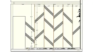 A side view of a staircase featuring a geometric 3D triangular textured wall with integrated lighting, complemented by an indoor garden landscape at the base.