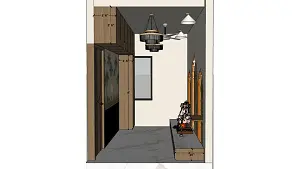 Measurement layout of a modern pooja room highlighting the marble platform sizing, pooja room wall panel placement, and front wall design details used for precise puja ghar execution.
