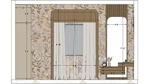 Bedroom showing luxury bed and decorative wardrobe,large mirror with louvers panelling design