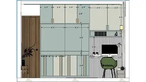 Bedroom showcasing luxury bed ,sleek tv unit  and decorative sliding wardrobe with study unit