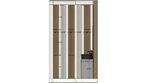 Counter basin and back side wall louvers panelling with round shape decorative mirror