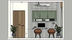Study area showing two decorative chair and some book storage with white louvers panelling design
