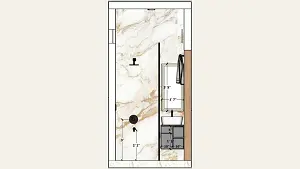 After entrance bathroom showing vanity unit with mirror  & shower area