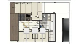 Kitchen entrance view showing cooking area , basin area and some storage unit
