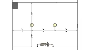 A view of the ceiling illustrating the placement of recessed spotlights.