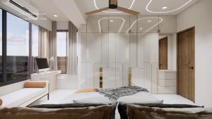 Master bedroom with profile light and designer fan