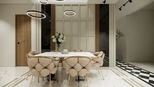 6 seater dining table with designing chair & decorative wall design