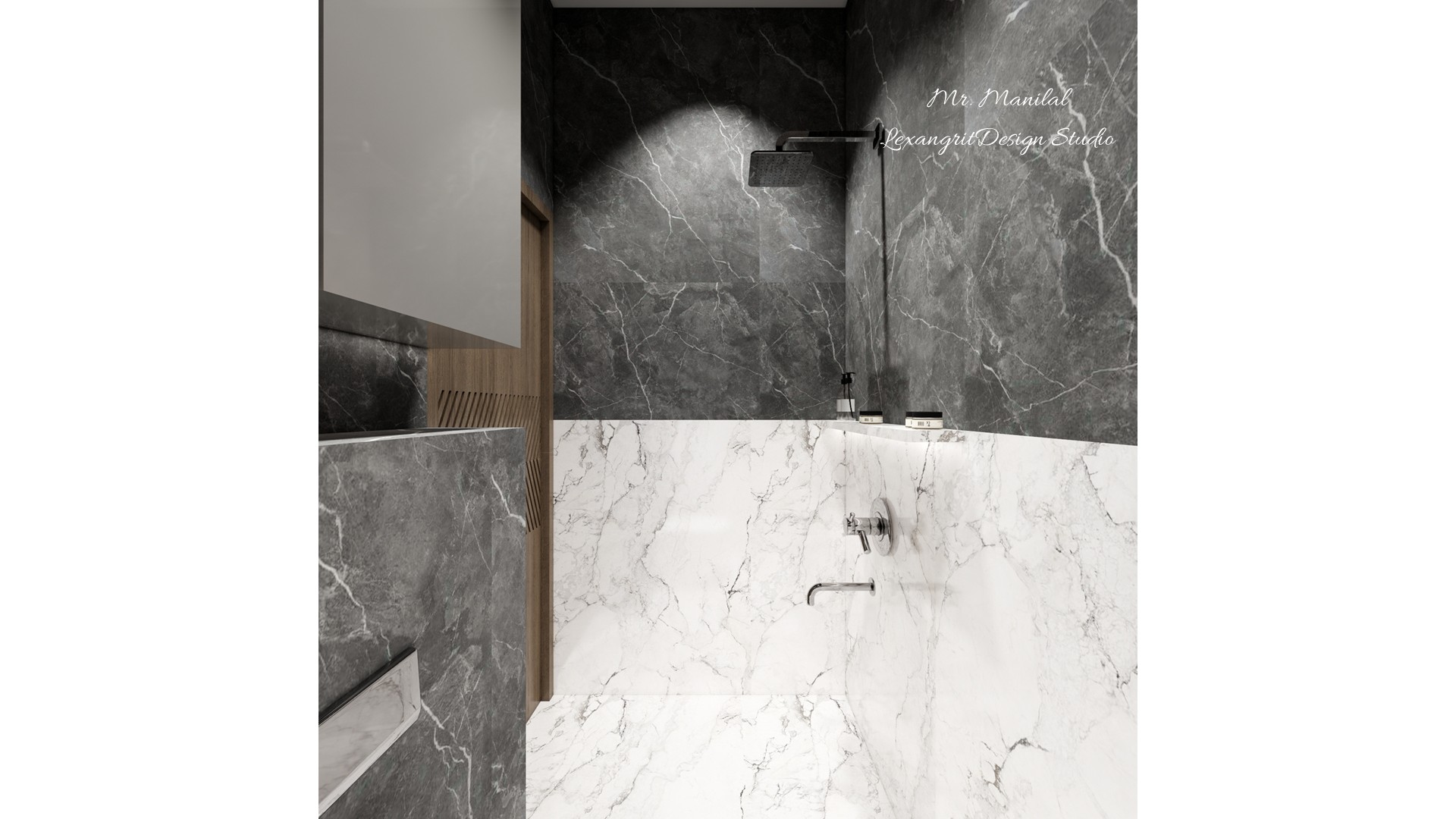 ascthetics maintainted in this toilet using white and black mabel finsh tiles