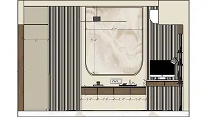 Beautiful sober TV unit design with marble finish laminate and duco painted panel and study unit Working drawing 2D