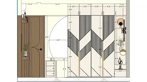 Bedroom after entrance view luxury bed with tv unit and designing wardrobe, dressing unit 2d dimension