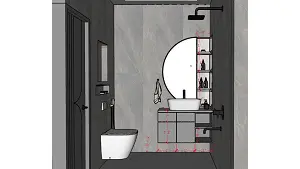 Bedroom Toilet shower area ,wc area and vanity unit with half moon shape mirror 2d dimensions