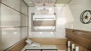 Bedroom showing luxury bed and  decorative wall design 2d dimension