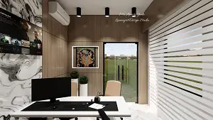 Premium boss office back wall design with onyx arch detailing, designed for a modern boss cabin and professional office interior setup