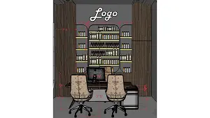 Boss cabin with decorative wall & storage 2d dimensions