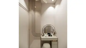 Closet dressing unit with round shape mirror and storage