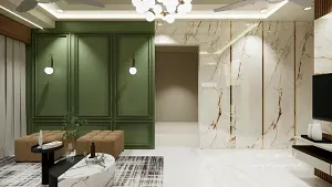 Living room design with closed fluted glass cabinet, open cabinets, cnc cutter mandir cabinet and luxury sofa set working drawing 2D