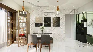 dinning design with dinning table and puja unit
