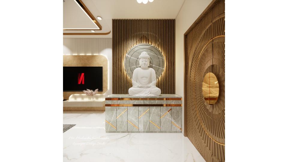 Entrance foyer with Budhha murti and wall panelling