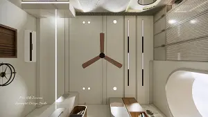 Falseceing with pop or gypsum board with track lighting & combination of spot and recessed lights with linear profile light runs above the door.