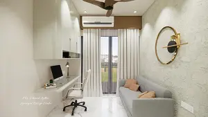 Modern guest bedroom AC pelmet with curtain showcasing full height curtain view, AC on pelmet dimensions, and a clean ac pelmet design — a practical and elegant ac pelmet with curtain solution for contemporary bedroom interiors.