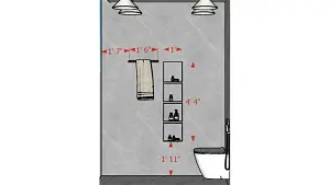 Image of the bathroom showcasing a spacious shower area with a glass partition and modern fixtures against a tiled wall 2d view
