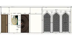 Image of the dining area & living area decorative wall cnc jali cutting design another view 2d dimensions