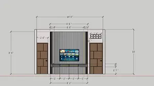 Image of the drawing room featuring a modern entertainment center with a flat-screen TV and built-in shelves against a sleek accent wall 2d dimensions