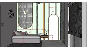 Image of the guest bedroom highlighting a built-in wardrobe with mirrored doors and ample storage 2d dimensions