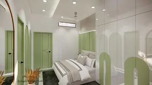 image of the guest bedroom highlighting a built-in wardrobe with stylish handel and ample storage