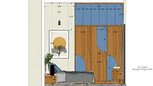 Image of the guest bedroom showcasing sleek tv unit and stylish sliding wardrobe 2d dimensions