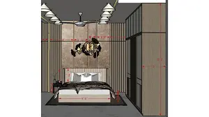 Image of the guest bedroom3 featuring a cozy bed with a wooden headboard, bedside tables and spacious sliding wardrobee 2d dimensions