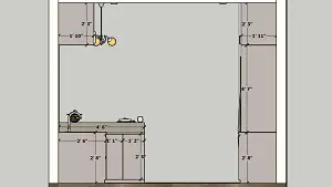 Image of the kitchen highlighting a stylish dining nook with a small table, chairs, and pendant lighting 2d dimensions