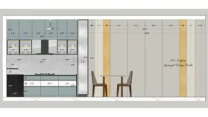 Image of the kitchen showcasing a spacious pantry area with open shelving and storage units against a clean, bright wall 2d dimensions