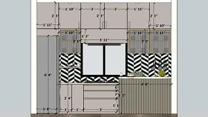 Image of the kitchen showcasing a spacious pantry area with open shelving and storage units against a clean, bright wall 2d dimensions