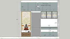 Image of the kitchen showcasing a spacious pantry area with open shelving and storage units against small puja unit 2d dimensions