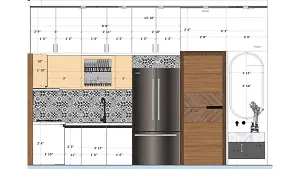 Image of the kitchen showcasing a spacious pantry area with sink unit and storage units against a clean, bright wall 2d dimensions