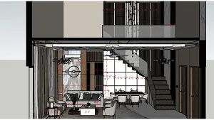 Image of the living room, dining room & stair case view 2d dimensions