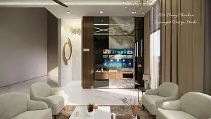 Image of the living room featuring a modern entertainment center with a flat-screen TV and built-in shelves against a sleek accent wall 2d dimensions