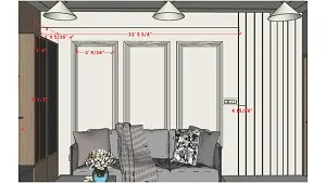 Image of the master bedroom displaying a comfortable seating area with a chaise lounge, side table, and a lamp against a decorated walll 2d dimensions