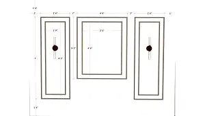 Image of the master bedroom showcasing a stylish dresser with a large mirror and luxurious bed with a tufted headboard,  against a soft-colored wall 2d dimensions