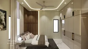 Image of the master bedroom highlighting a spacious wardrobe with sliding doors