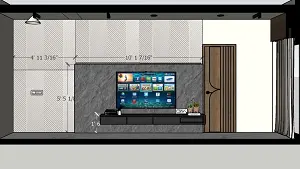Image of the master bedroom room featuring a modern entertainment center with a flat-screen TV and built-in against a sleek accent wall 2d dimensions