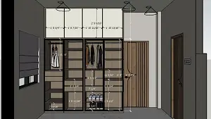 Image of the walk in closet fluted glass wardrobe & smal dresser unit 2d dimensions
