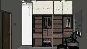 Image of the walk in closet fluted glass wardrobe & smal dresser unit 2d dimensions