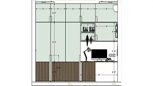 Kid's bedroom wardrobe and study unit front view 2d dimensions
